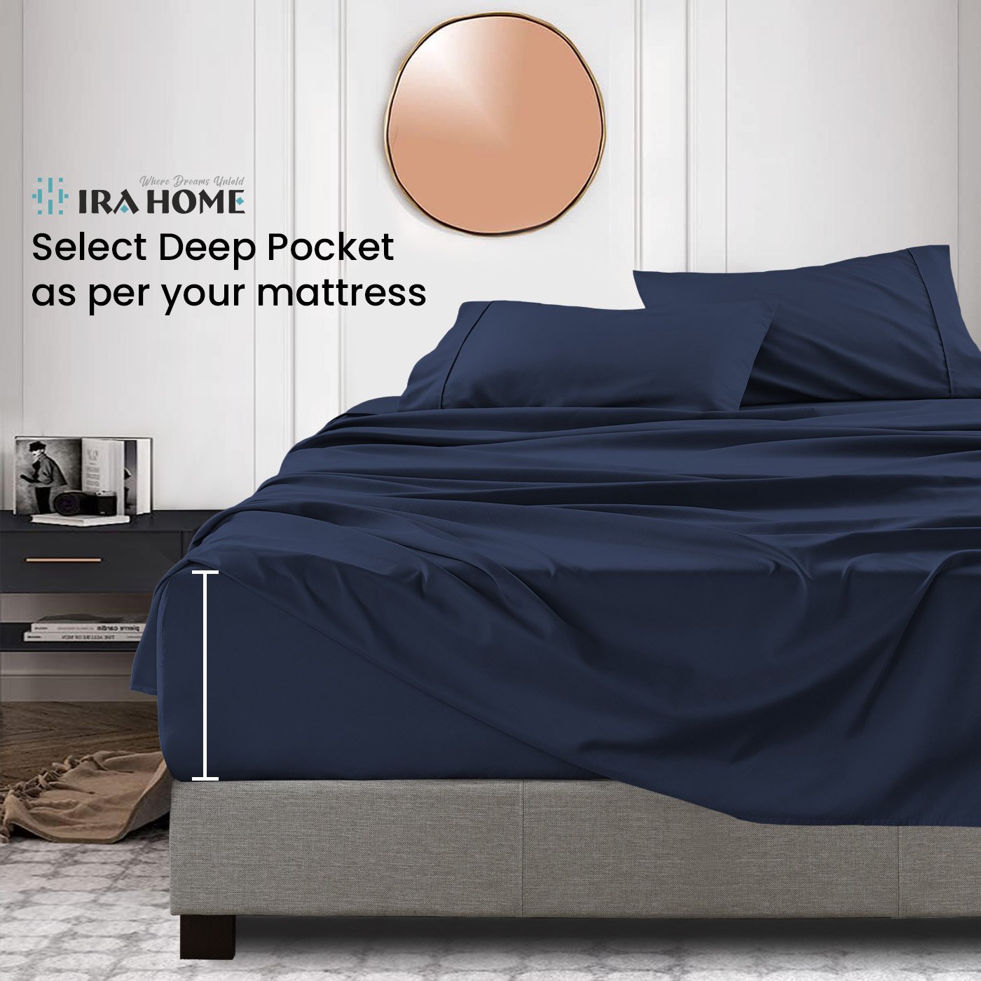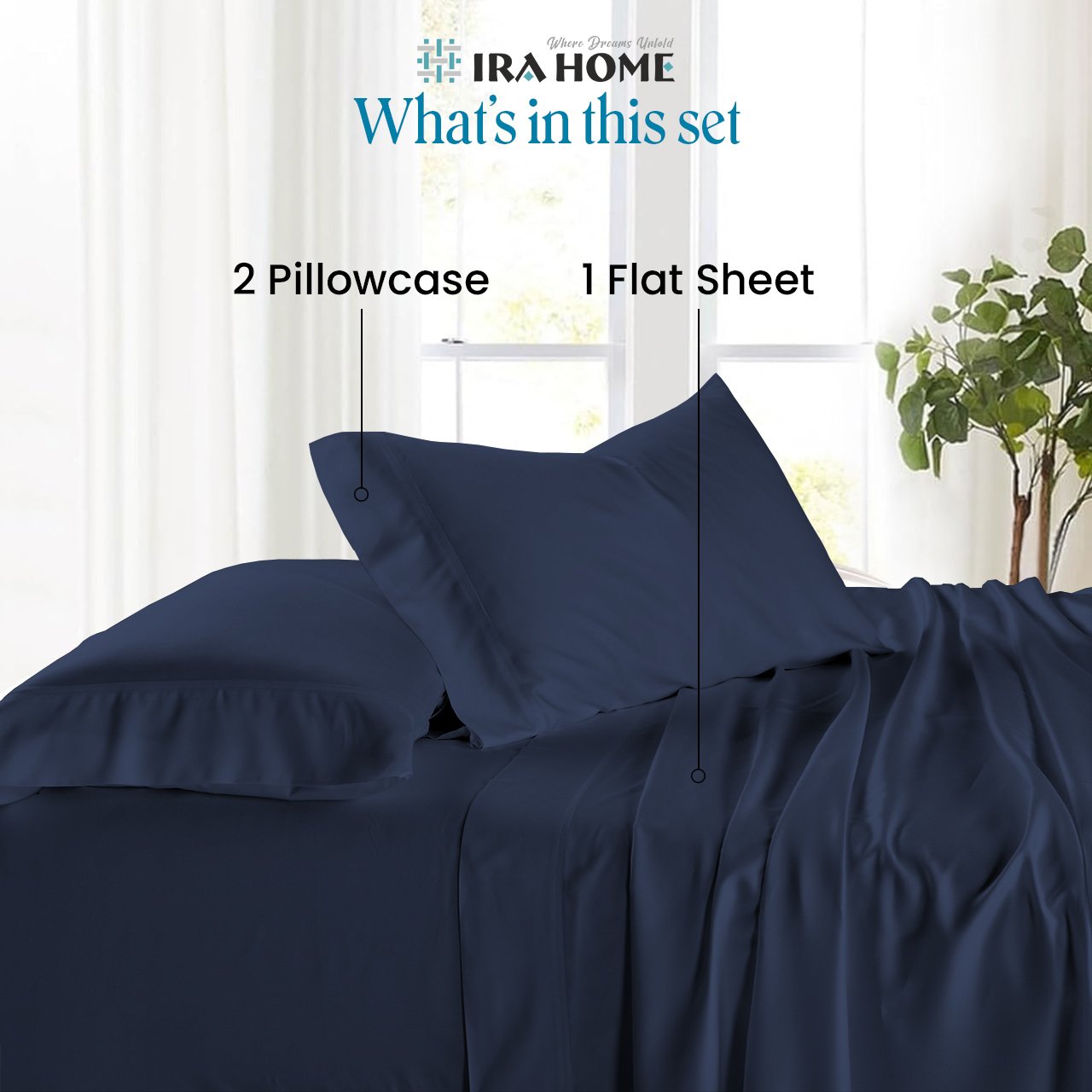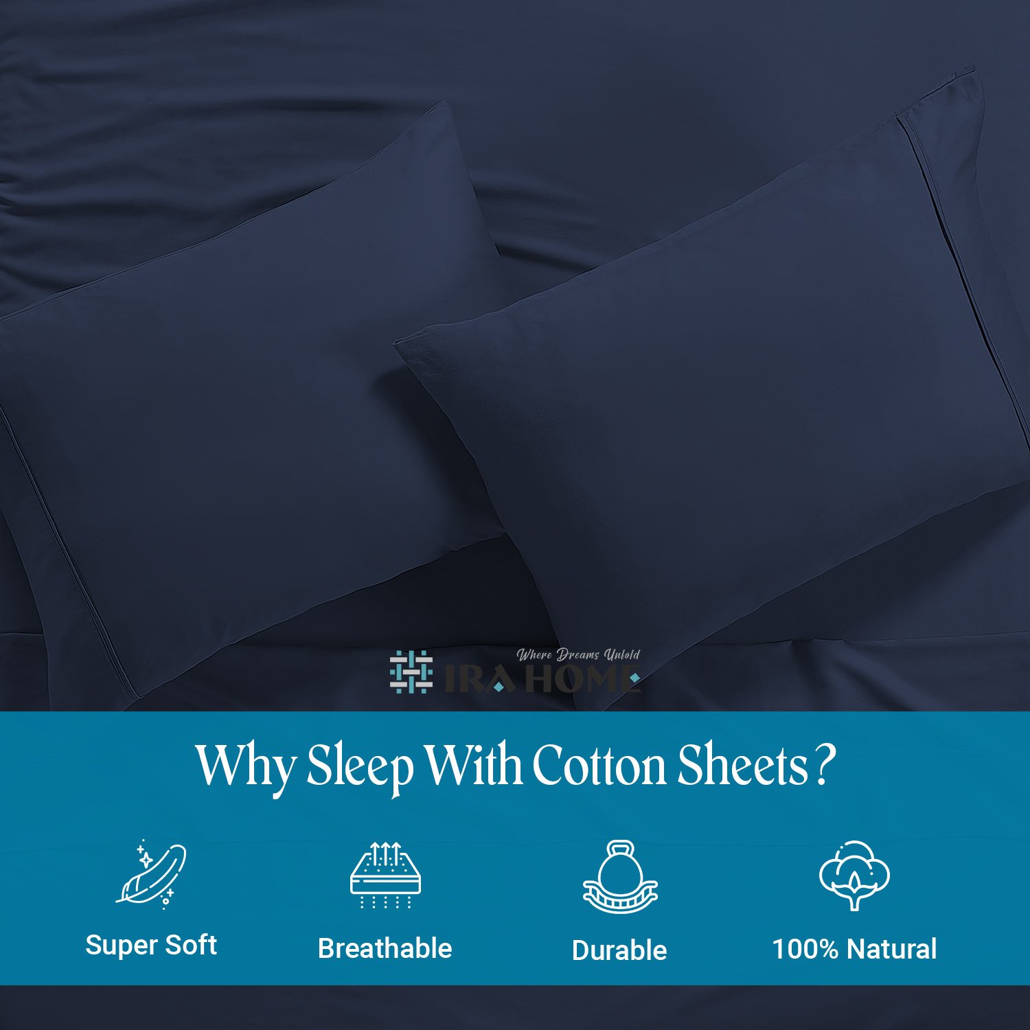 100% Egyptian Cotton 3 Piece Sheet Set For King Size Bed (Navy Blue) – irahome.in